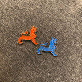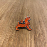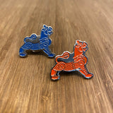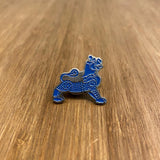 Asia Society has a pair of Nepalese guardian sculptures cast in bronze and dating to the eighteenth century. These leogryphs belonged to the Jacques Marchais Center of Tibetan Art on Staten Island, but since 1960 remained on long-term loan to Asia Society. In 1997 Asia Society acquired them from the Center. The leogryph logotype symbol of Asia Society is based on the forms of these sculptures. This enamel pin is featured with the leogryph logo.