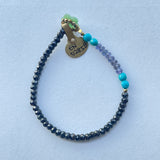Vintage Jade bracelet with Black Agate, Tanzanite, Turquoise and Hematite