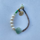 Jade and Pearl bracelet with Smoky Quartz, Turquoise and Hematite