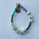 Jade and Pearl bracelet with Black Agate, Tanzanite, Turquoise and Hematite